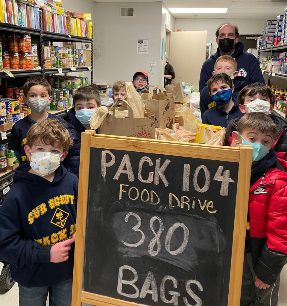 In the Boy Scout Oath, a Scout promises to help other people at all times. By participating in Pack 104’s food drive, Scouts came a step closer to fulfilling those words.