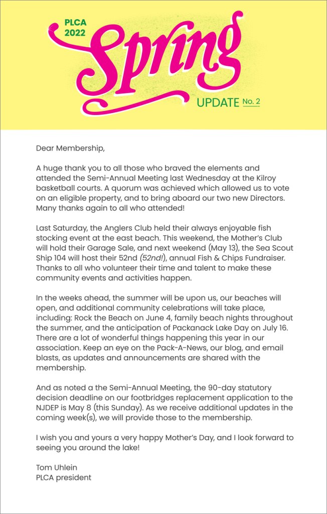 PLCA SPRING UPDATE By packanacklake on May 3, 2022 • ( Leave a comment ) Share this: Click to share on X (Opens in new window) X Click to share on Facebook (Opens in new window) Facebook Click to email a link to a friend (Opens in new window) Email Click to share on Pinterest (Opens in new window) Pinterest Like Loading... Related Categories: Uncategorized packanacklake