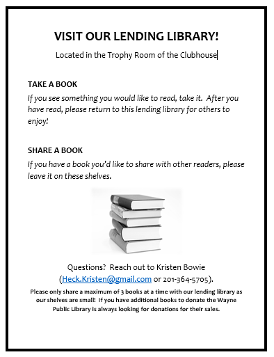 Visit our new lending library in the Trophy Room, started and maintained by moms who love to read and share.