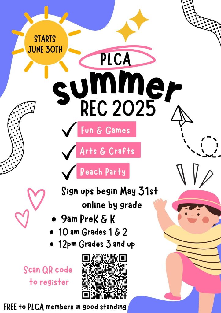 We’re excited to announce that registration for Summer Rec will begin this Saturday, May 31, 2025. Please see the schedule below to sign up by your child’s grade level: