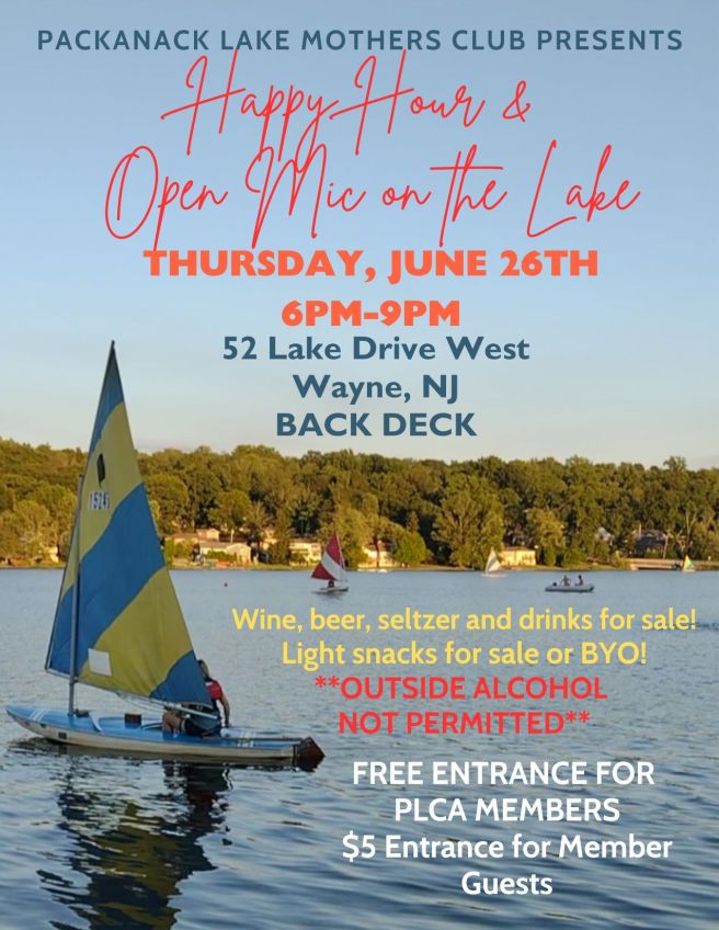 The Mothers Club invites you to Happy Hour and Open Mic on the lake!