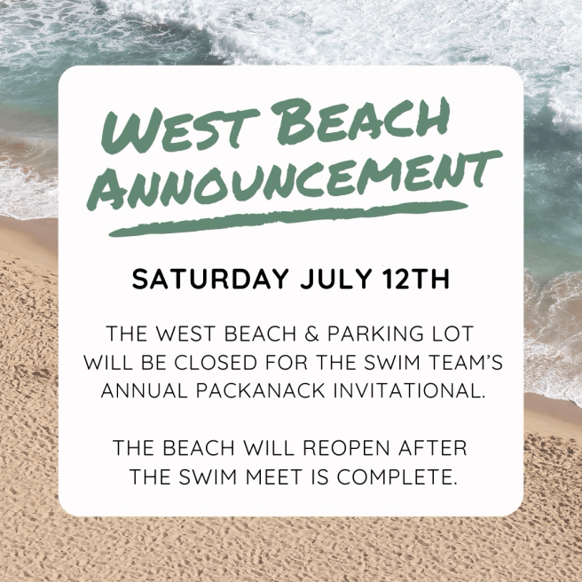 REMINDER: SWIM TEAM’S ANNUAL INVITATIONAL 7/12 By packanacklake on July 11, 2025 • ( Leave a comment ) THE STREETS AND AREAS NEAR THE CLUBHOUSE WILL BE VERY BUSY SATURDAY UNTIL ABOUT 2:00 Share this: Click to share on X (Opens in new window) X Click to share on Facebook (Opens in new window) Facebook Click to email a link to a friend (Opens in new window) Email Click to share on Pinterest (Opens in new window) Pinterest Like Loading... Related Categories: Uncategorized packanacklake