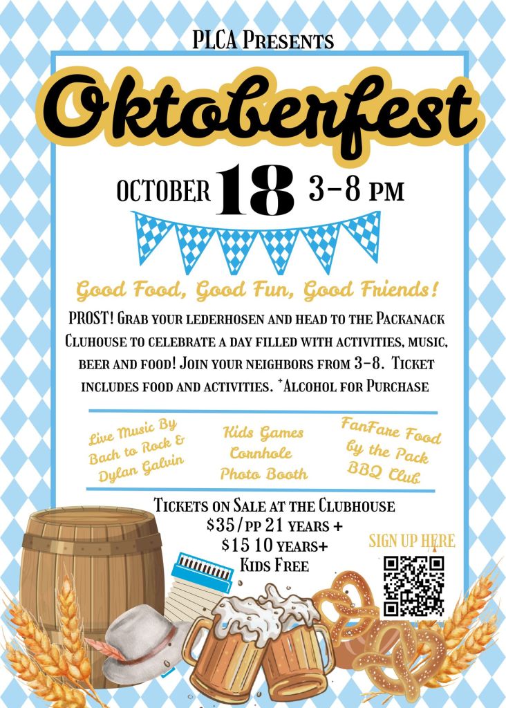 PLCA is hosting an Oktoberfest this year! 10/18 3-8 pm. Get your tickets at the clubhouse or sign up in advance here: https://docs.google.com/forms/d/e/1FAIpQLSdA-zgjkVuGw_3gT_cHICI-bjbwUGTNY6r4Wrdcmsv1vQbihQ/viewform