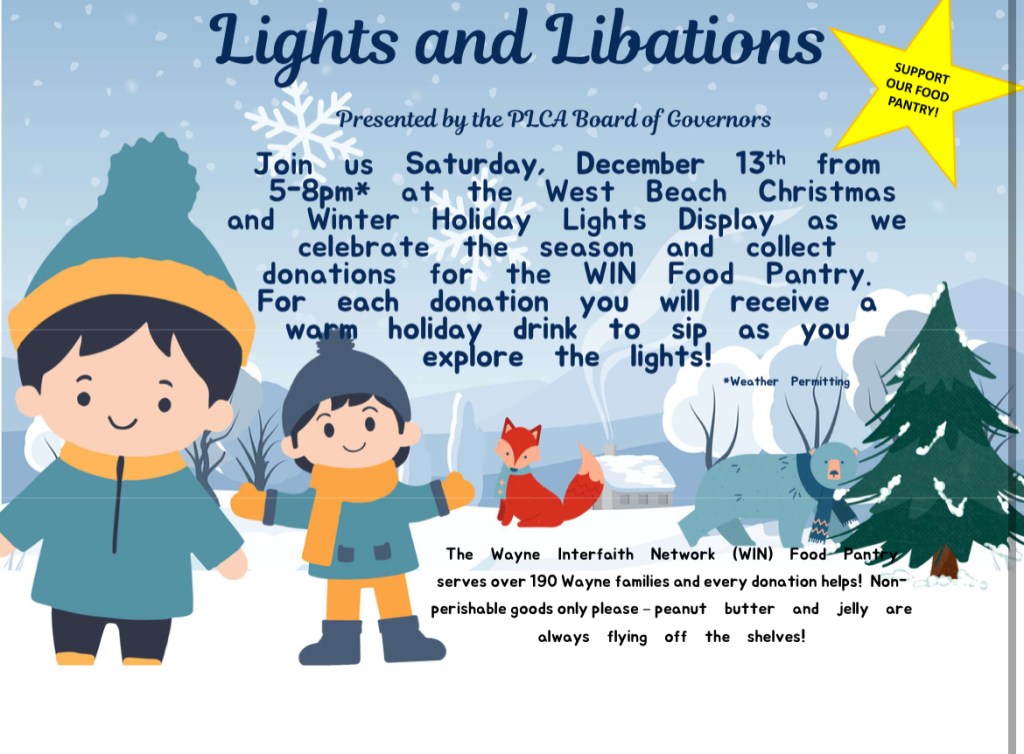 Join us Saturday, December 13th from 5-8pm* at the West Beach Christmas and Winter Holiday Lights Display as we celebrate the season and collect donations for the WIN Food Pantry. For each donation you will receive a warm holiday drink to sip as you explore the lights!