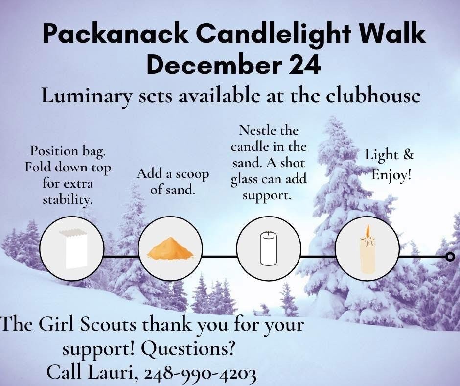 The clubhouse office still has some sets of luminaries available ($10). Thank you from the Girl Scouts for your support – looking forward to the lights next week!