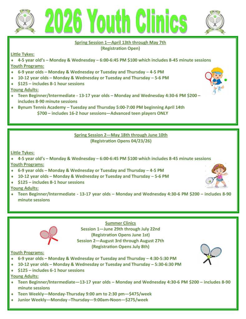 2026 Tennis Youth Clinics By packanacklake on March 6, 2026 • ( Leave a comment ) Registration link: https://packanacklaketennis.com/shop-pltc-1 Share this: Share on X (Opens in new window) X Share on Facebook (Opens in new window) Facebook Email a link to a friend (Opens in new window) Email Share on Pinterest (Opens in new window) Pinterest Like Loading... Related Categories: Uncategorized packanacklake
